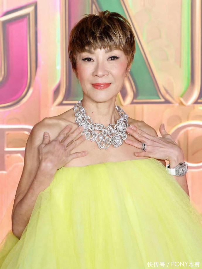 不过,这个颜色的确很衬杨紫琼的肤色!年纪大了穿一些跳跃的色彩,不仅穿着者自己感觉更年轻了,外人看来,也会被她的活力感所感染!
