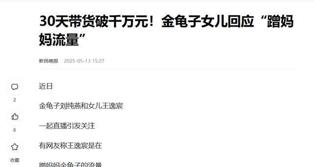 王逸宸如今也是一个小网红,但因为没有出众的作品所以被网友质疑“啃老”,蹭妈妈流量。 于是她月的一场直播中理直气壮地表示:“我妈努力了一辈子,不就是为了让我蹭吗”。 还顺带告诉众多网友,自己也多努努力,让自己的孩子将来也有得蹭。